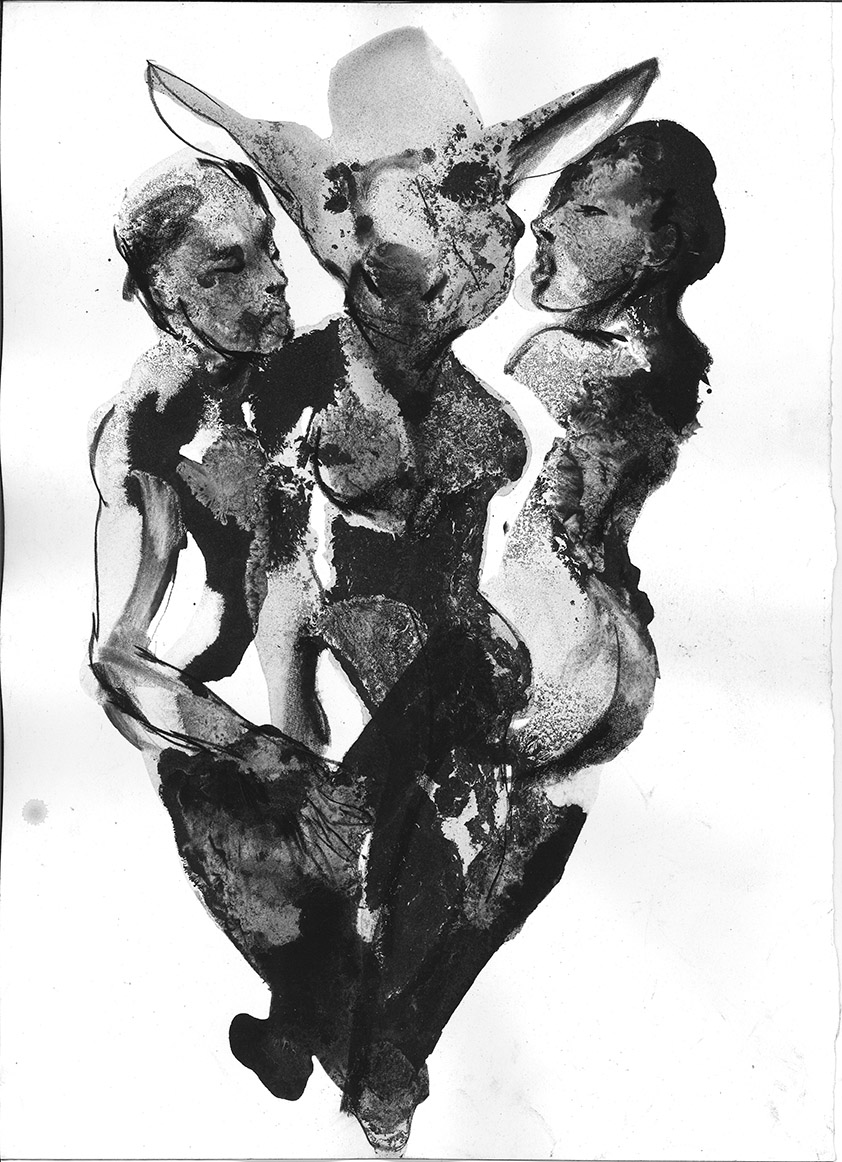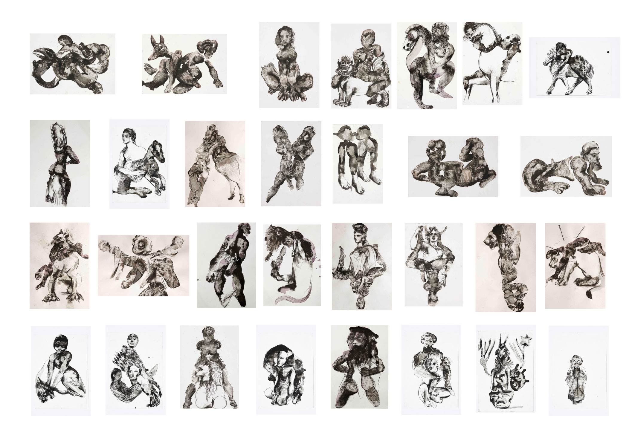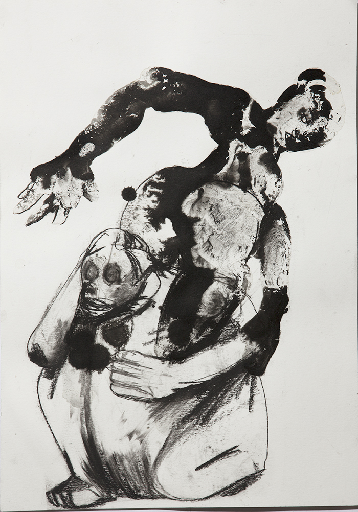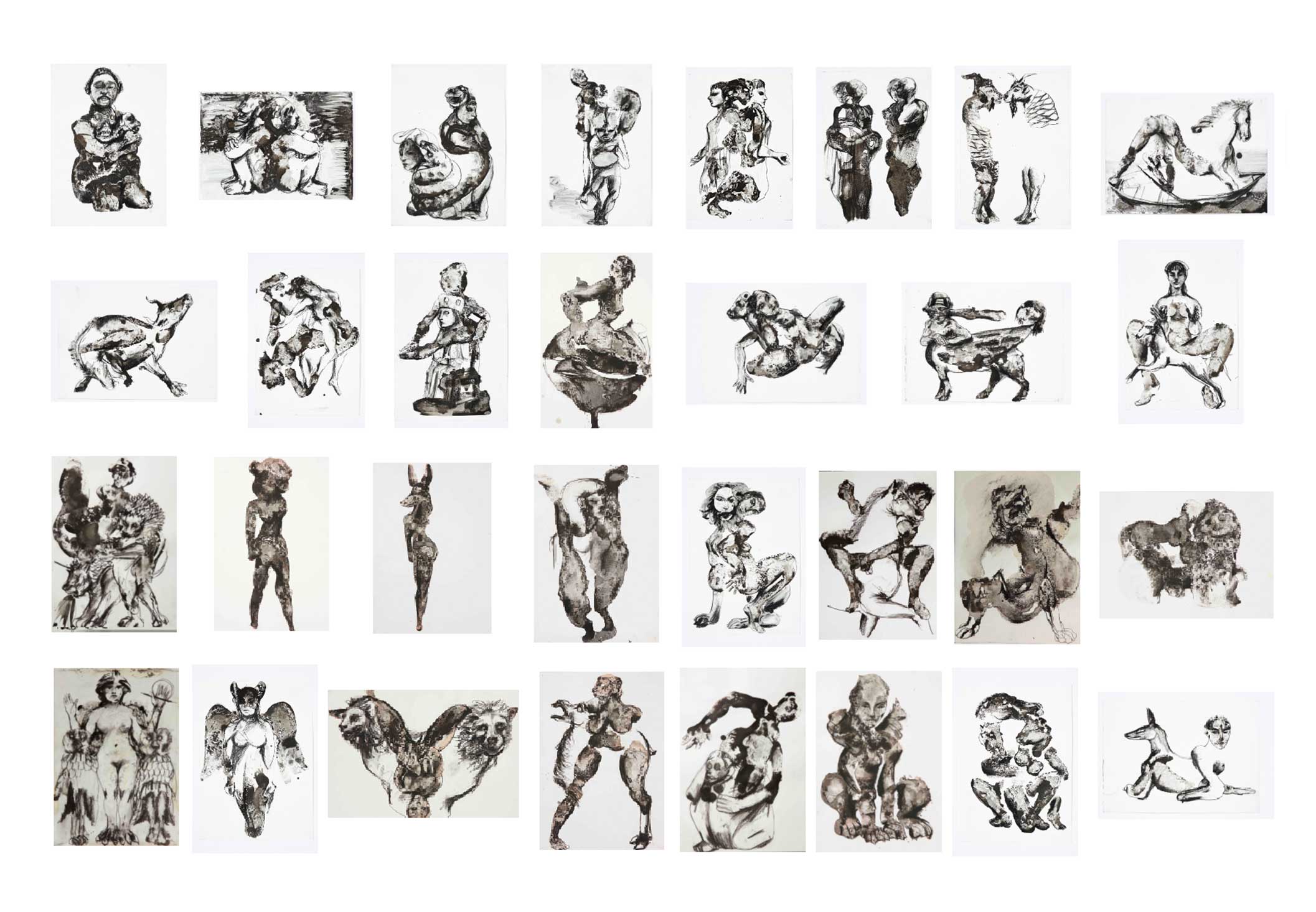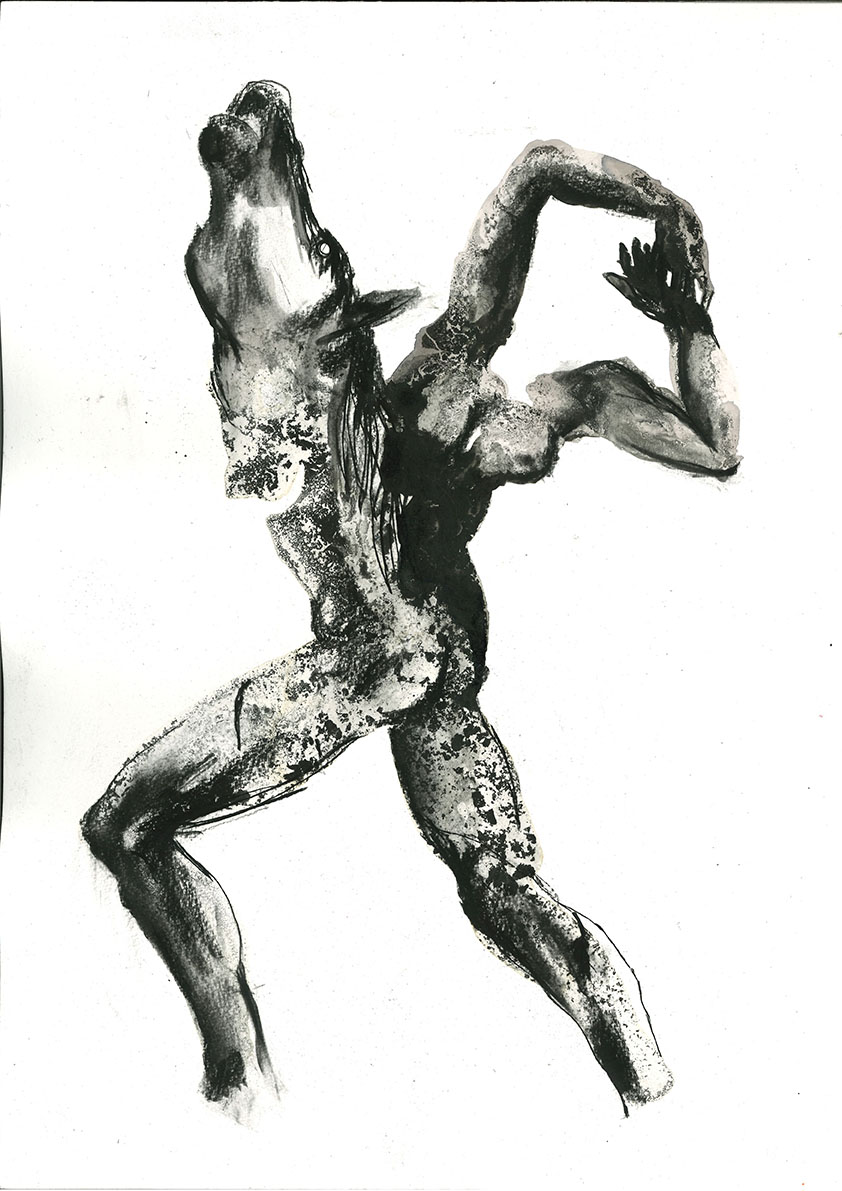 Pencil, ink and wine on paper 42 x 30cm and 30 x 42cm