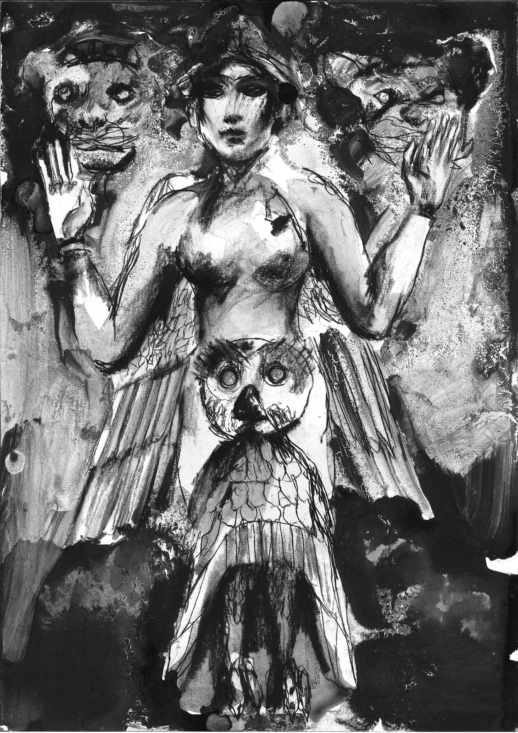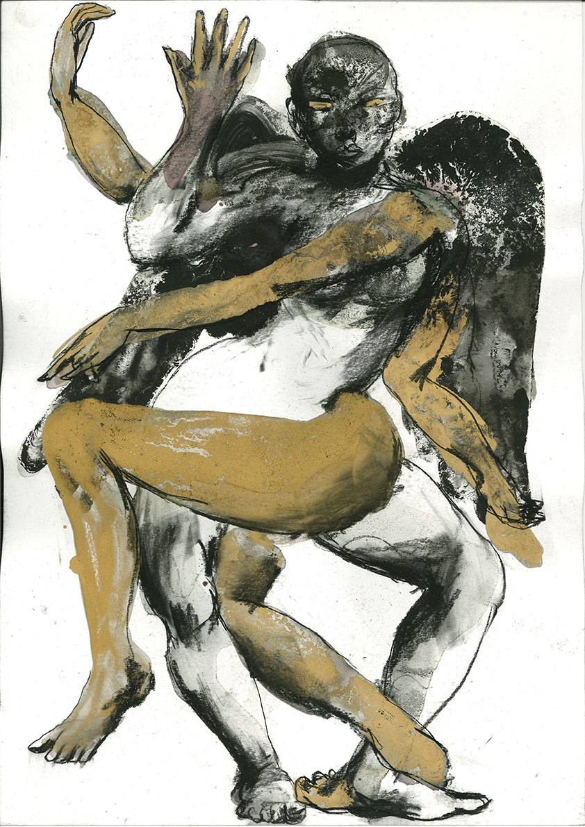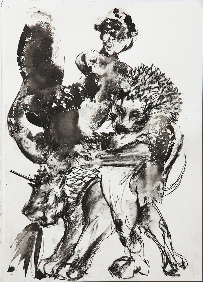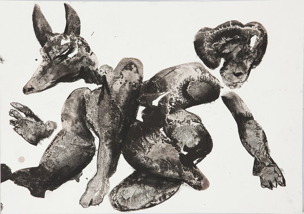 ink, acrylic and oil on paper 151 x 121cm 2021